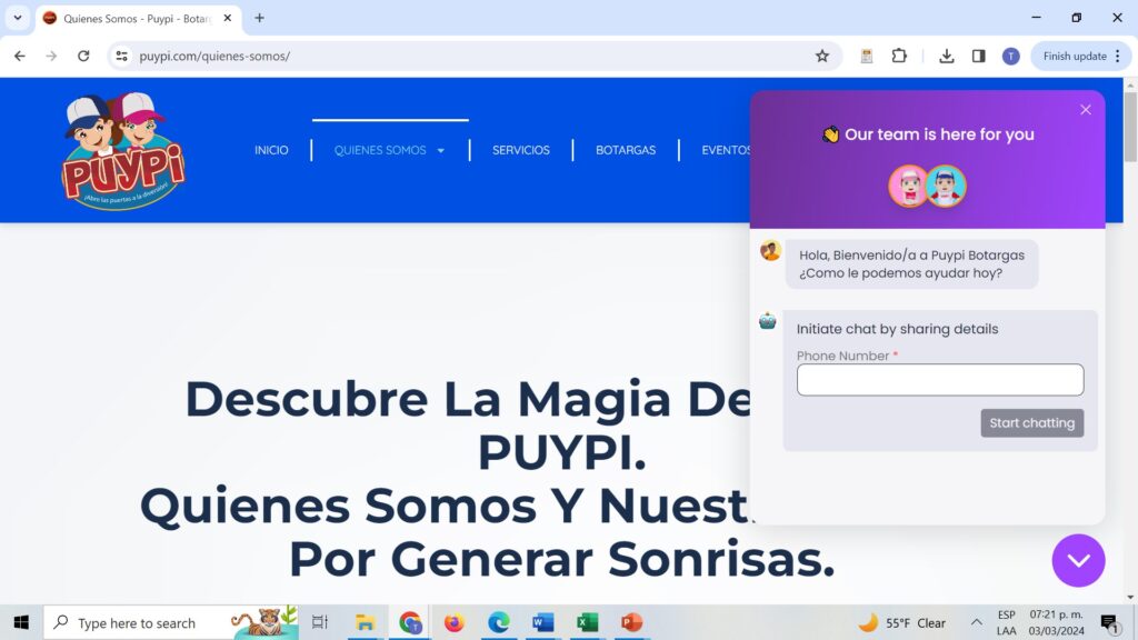 La introducción de nuevos servicios de animación infantil por parte de Botargas Puypi representa una estrategia para satisfacer las crecientes demandas y expectativas de los clientes actuales. Mediante la incorporación de materiales novedosos y la expansión de las actividades interactivas con dinámicas innovadoras en fiestas infantiles, la empresa puede diversificar su oferta y generar fidelidad por parte de los clientes a través de un Chatbot con respuestas rápidas.